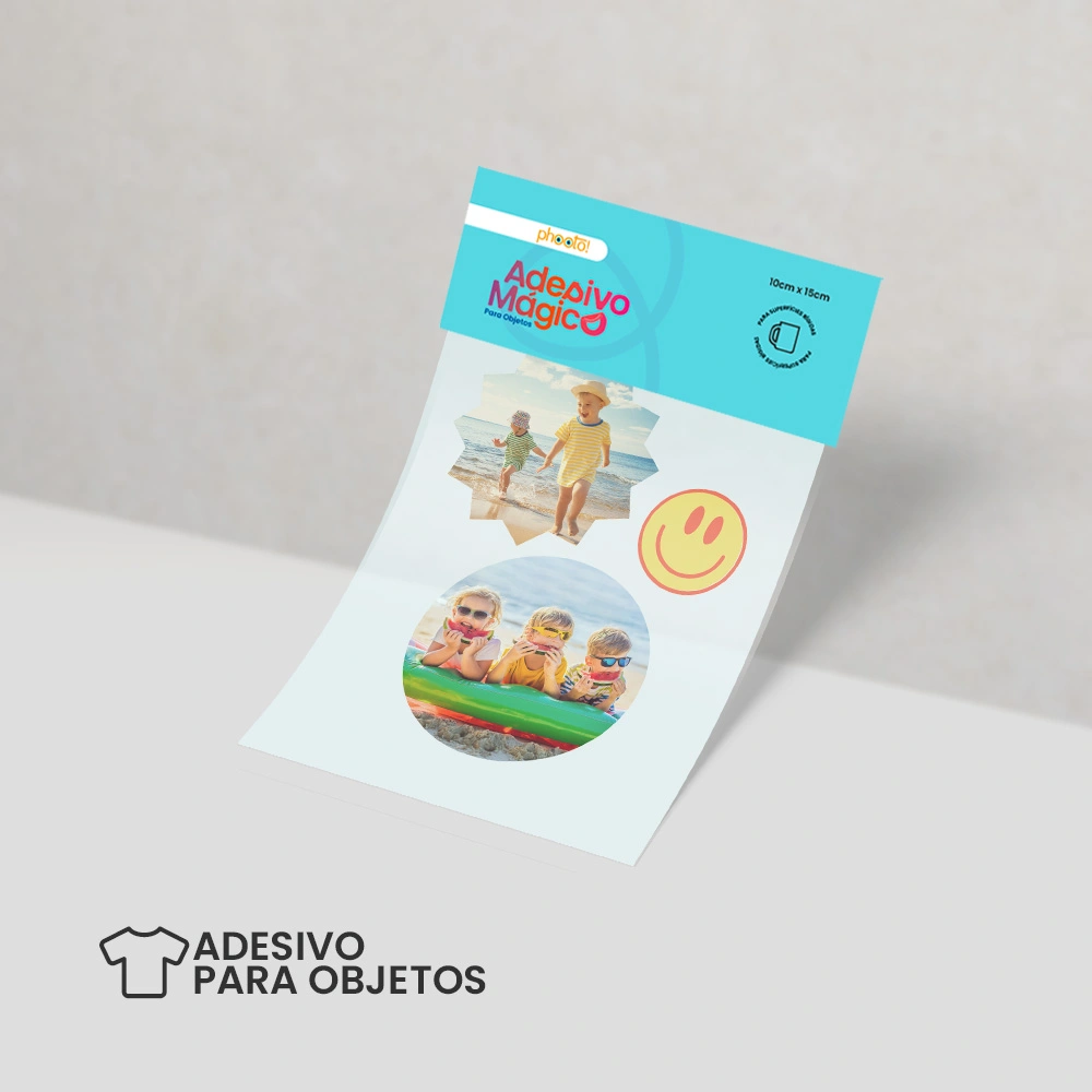 Transforme camisetas, ecobags e roupas e mais de 20 tecidos com lembranças afetivas! Com o adesivo mágico para tecidos da Phooto, você personaliza com amor e aplica com ferro ou prensa. Cartelas em 3 tamanhos para criar e emocionar no dia a dia.