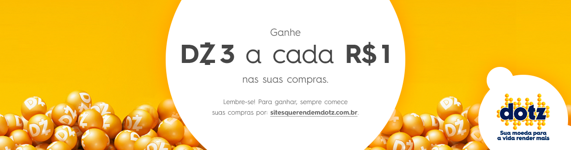 Válido para compras realizadas somente por meio desta landing page. Os DOTZ serão creditados em até 30 dias após e confirmação do CPF do cliente DOTZ, bem como depois da aprovação do pagamento. Os DOTZ não serão creditados se o produto for devolvido ou em caso de cancelamento do pedido. A quantidade de DOTZ será calculada sobre o valor dos vales, sem levar em consideração os valores de frete, juros e outros serviços.