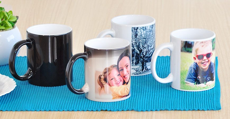 Já a caneca mágica é uma ótima alternativa para presentear crianças. Quando adicionada qualquer bebida quente, a foto escolhida aparece na caneca como um passe de mágica.